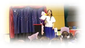 | ・2021年まで、こどもの日パペットショーを14回実施。 (パペット合唱団・パペットクラブの皆と 県図書館・藤村記念館) ![]() |